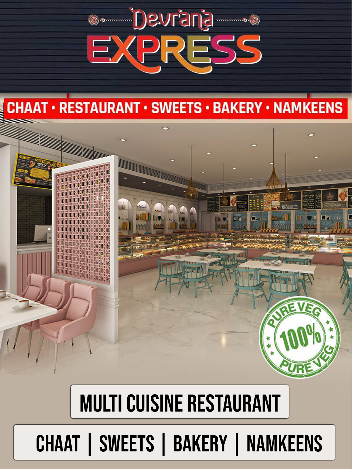 North Indian, South Indian, Chinese, Continental, Italian Restaurant Tandoor, chaat, soup, Thali, Veggie combo meals., Hot Beverages, cold beverages, snacks, sweets, bakery, gift hampers namkeens and packed items.