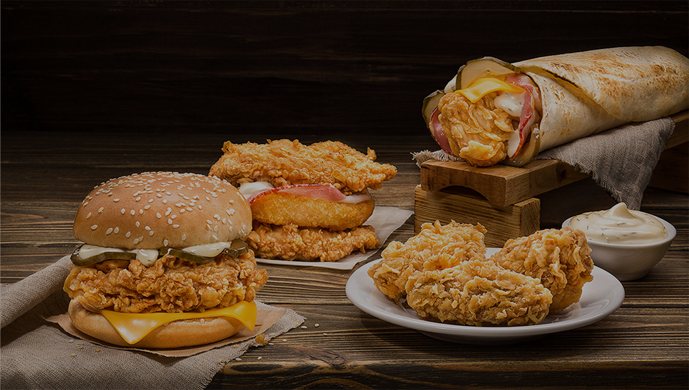 Burgers, Fried chicken, pizzas and more